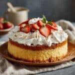 An authentic Tres Leches Cake recipe featuring a light and airy sponge cake soaked in three types of milk—whole milk, sweetened condensed milk, and evaporated milk—making it ultra moist, sweet, and incredibly delicious. Topped with fluffy whipped cream and garnished with fresh strawberries and mint, this traditional Mexican dessert is perfect for any occasion.