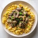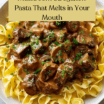 Keywords: beef stroganoff, mushroom stroganoff, creamy beef pasta, comfort food recipe, easy dinner, beef pasta recipe