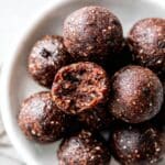 Keywords: brownie bites, protein bites, no bake snack, healthy snack, energy bites, post workout snack