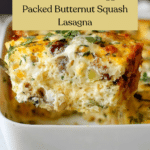 This Butternut Squash, Mushroom & Spinach Lasagna is a hearty, comforting dish that swaps traditional tomato sauce for a creamy cauliflower-based sauce. It layers tender roasted butternut squash, sautéed mushrooms and spinach, and a rich ricotta mixture between no-boil lasagna noodles. Finished with melted mozzarella and Asiago cheese, this vegetarian-friendly lasagna offers a flavorful, nutritious twist on a classic Italian favorite perfect for cozy dinners.