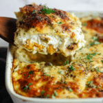 This Butternut Squash, Mushroom & Spinach Lasagna is a hearty, comforting dish that swaps traditional tomato sauce for a creamy cauliflower-based sauce. It layers tender roasted butternut squash, sautéed mushrooms and spinach, and a rich ricotta mixture between no-boil lasagna noodles. Finished with melted mozzarella and Asiago cheese, this vegetarian-friendly lasagna offers a flavorful, nutritious twist on a classic Italian favorite perfect for cozy dinners.