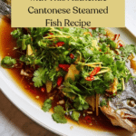 This Cantonese-Style Steamed Fish recipe highlights a delicate and aromatic approach to cooking fresh white-fleshed fish. Featuring a fragrant mix of ginger, scallions, cilantro, and a flavorful soy-sherry sauce, the fish is steamed to perfection and finished with sizzling hot oil poured over fresh herbs and optional chili slices for an authentic Cantonese dining experience.