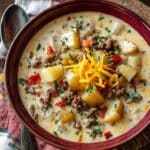 Keywords: Cheeseburger Soup, Macaroni Soup, Ground Beef Soup, Comfort Food Soup, American Soup Recipe