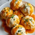 Cheesy Buffalo Ranch Chicken Bombs are savory, bite-sized treats featuring a spicy buffalo chicken filling mixed with creamy ranch and cheddar cheese, all wrapped in flaky crescent roll dough and baked to golden perfection. Perfect for game day, appetizers, or a flavorful snack, these bombs combine creamy, tangy, and spicy flavors in every delicious bite.