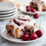 These Cherry Chocolate Rolls, inspired by the classic Black Forest flavors, combine rich cocoa dough with fresh Bing cherries, white and dark chocolate chips, and a sweet vanilla butter filling. Soft, tender, and perfectly sweet, they are topped with a luscious vanilla glaze, making them an irresistible treat for breakfast or dessert.
