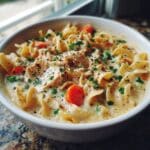 Chicken Pot Pie Pasta is a comforting twist on the classic pot pie. This creamy pasta dish is loaded with tender chicken, vegetables, and a rich sauce that brings all the flavors together in a simple, satisfying meal.
