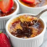 • To make individual portions ahead of time, prepare and refrigerate the custards up to the point before caramelizing the sugar.