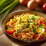 It’s best to use cooked chicken to avoid overcooking the noodles. If you prefer to use raw chicken, cook it separately and then add it near the end to ensure it’s fully cooked without mushy noodles.