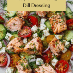 A light and refreshing salmon salad combining flaky cooked salmon with creamy mayo or Greek yogurt, crisp celery, tangy onion, fresh lemon juice, and aromatic dill. Perfect as a quick, healthy meal or snack served chilled.