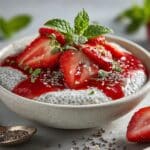 A refreshing and healthy Strawberry Chia Seed Pudding made with chia seeds soaked in creamy coconut milk, naturally sweetened and topped with fresh strawberries. This no-cook recipe is perfect for a nutritious breakfast or a guilt-free dessert.