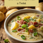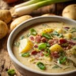 A comforting and creamy Sweet Potato Chowder featuring tender sweet potatoes, sautéed onions and garlic, simmered in a flavorful vegetable broth, and finished with rich cream. Optionally enhanced with crispy bacon for added texture and taste, this chowder is perfect for a cozy meal any time of year.