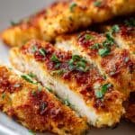 Keywords: crispy chicken, Parmesan crust, baked chicken, easy chicken recipe, breadcrumb chicken, dinner recipe