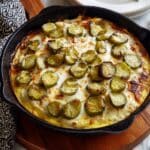 - Use a large oven-safe skillet like a 12-inch cast iron pan to avoid transferring before baking.