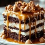 This Decadent Caramel Toffee Crunch Cake is a luscious dessert combining a moist, tender cake infused with crushed toffee pieces and optional pecans, layered and frosted with a smooth caramel buttercream. The rich caramel flavors and delightful crunch make it an irresistible treat perfect for special occasions or indulgent celebrations.