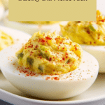 Classic deviled eggs featuring creamy, tangy yolk filling seasoned with mustard, dill pickle relish, and a touch of hot sauce, garnished with paprika. Perfect as a delicious appetizer or party snack that’s easy to prepare and always a crowd-pleaser.