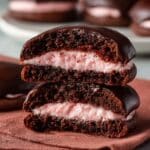 These Easy Chocolate Covered Strawberry Cookies combine a tender cocoa-flavored cookie dough with a luscious strawberry buttercream center, all topped with a smooth layer of bittersweet chocolate. The frozen strawberry filling inside offers a delightful surprise, making these cookies perfect for chocolate and fruit lovers alike.