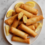 Fatima’s Fingers are delicious Tunisian egg rolls filled with a flavorful mixture of sautéed chicken, aromatic spices, tender potatoes, hard-boiled eggs, mozzarella cheese, and fresh parsley, all wrapped in crispy spring roll wrappers and deep-fried to golden perfection. This recipe offers a delightful blend of textures and tastes, perfect as a snack or appetizer with a squeeze of fresh lemon.