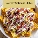 Keywords: Frito Cowboy Cabbage, Tex-Mex, ground beef recipe, cabbage skillet, taco seasoning, easy dinner, Fritos topping, one-pan meal