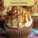 11. Fill and frost: Spoon or pipe the prepared caramel into the hollowed centers of each cupcake. Then pipe or spread the peanut butter buttercream over the top, covering the caramel-filled center completely.