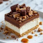 Keywords: No-bake cheesecake, Twix cheesecake, chocolate caramel cheesecake, easy dessert, no oven dessert, creamy cheesecake, layered dessert