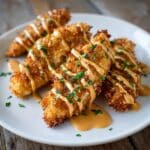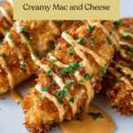 Crispy baked chicken tenders tossed in a sweet and spicy hot honey glaze, served alongside creamy, cheesy macaroni and cheese. This comforting meal offers a perfect balance of heat, sweetness, and rich cheesy decadence that’s quick and easy to prepare.