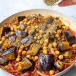 - Step 10: Once the tomatoes are cooked and fragrant, stir in the roasted eggplant and chickpeas.