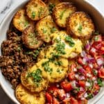 Keywords: Loaded Potato Bowls, Tex-Mex Dinner, Roasted Potatoes, Ground Beef, Vegetarian Potato Bowl, Cheesy Potato Recipe