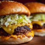 Old School Pizza Burgers combine classic burger flavors with the beloved taste of pizza, featuring juicy ground beef mixed with rich pizza sauce, melted cheese, and toasted buns for a nostalgic and delicious meal.