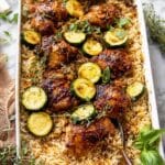 This One Pan Chipotle Honey Chicken and Rice is a flavorful and satisfying dish combining tender baked chicken thighs with fragrant basmati rice, zucchini, and a spicy-sweet chipotle honey sauce. Perfect for an easy weeknight meal, it cooks all in one dish for minimal cleanup while delivering a delicious balance of smoky, sweet, and spicy flavors.