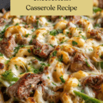 A hearty and comforting Philly Cheesesteak Casserole that layers tender cooked beef, sautéed peppers and onions, and melted cheese, baked until bubbly and golden. This dish offers all the delicious flavors of the classic Philly cheesesteak sandwich in an easy-to-make casserole form, perfect for family dinners or casual gatherings.
