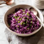 This vibrant Purple Rice recipe combines fragrant jasmine rice with finely shredded red cabbage, sautéed garlic, and onions, cooked gently in vegetable stock to create a colorful, flavorful, and nutritious side dish. Easy to prepare on the stovetop, it adds a beautiful pop of color and a delightful crunch to any meal.