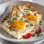 Sheet Pan Cottage Cheese Eggs is a simple and nutritious breakfast dish where eggs are combined with creamy cottage cheese and seasoning, then baked on a sheet pan until perfectly set. This easy recipe offers a delicious way to enjoy a high-protein meal with minimal effort and cleanup.