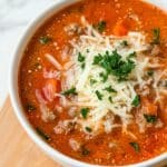 Keywords: slow cooker lasagna soup, lasagna soup recipe, crockpot lasagna soup, easy lasagna soup, Italian soup, comfort food soup