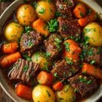A classic slow cooker pot roast is the perfect comfort meal for any day. Tender beef, hearty vegetables, and rich broth come together effortlessly in one pot, making dinner both easy and satisfying.