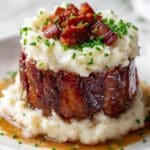 These Smoky Bourbon BBQ Bacon-Wrapped Meatloaf Cupcakes with Potato Frosting combine hearty ground meat wrapped in crispy bacon, glazed with a rich bourbon BBQ sauce, and topped with creamy mashed potato ‘frosting’ for a fun, flavorful twist on classic meatloaf.