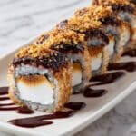 S’mores Sushi is a creative, no-bake dessert that transforms classic s’mores ingredients into fun, bite-sized sushi-style rolls. Made with a crispy Rice Krispies and marshmallow base, filled with marshmallow fluff, crushed graham crackers, and chocolate chips or Nutella, this dessert is perfect for parties, family gatherings, or anytime you want a playful sweet treat without baking.