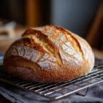 3. Bake As Usual: Preheat your oven, preferably with a baking stone or Dutch oven, and bake the sourdough loaf at your standard temperature and time, generally around 450°F (230°C) for 30-40 minutes, until the crust is golden and the loaf sounds hollow when tapped.