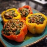 Spinach Ricotta Stuffed Peppers are a delicious and comforting dish that combines creamy ricotta, fresh spinach, and gooey mozzarella baked inside sweet bell peppers. This easy recipe is perfect for a satisfying vegetarian meal any day of the week.