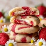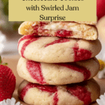 Strawberry Cheesecake Cookies combine the creamy richness of cheesecake with the sweet, fruity burst of strawberry jam in a soft, buttery cookie. These delightful treats feature a frozen cream cheese filling encased in a tender cookie dough swirled with homemade strawberry jam, perfect for a special occasion or any time you crave a luscious dessert cookie.