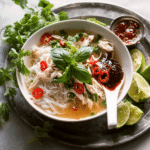 This authentic Vietnamese Chicken Pho (Pho Ga) recipe features a fragrant, slow-simmered broth seasoned with star anise, cinnamon, and cloves, paired with tender shredded chicken and delicate rice noodles. Served with fresh herbs, lime, and traditional condiments, this comforting soup is perfect for a flavorful, warming meal.